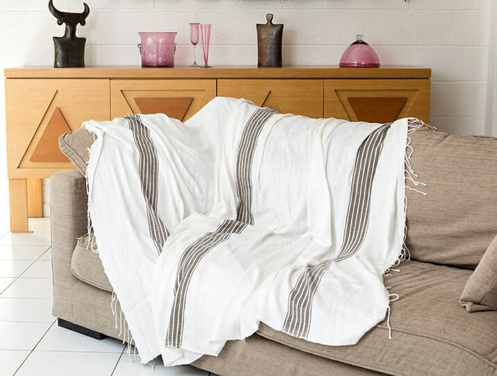 Caractéristiques de ce jeté de lit artisanal, plaid avec rayures grèges