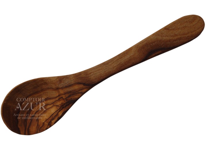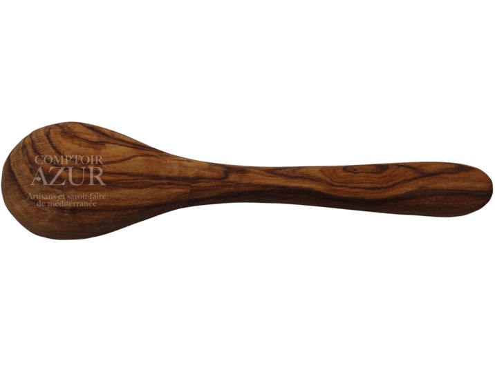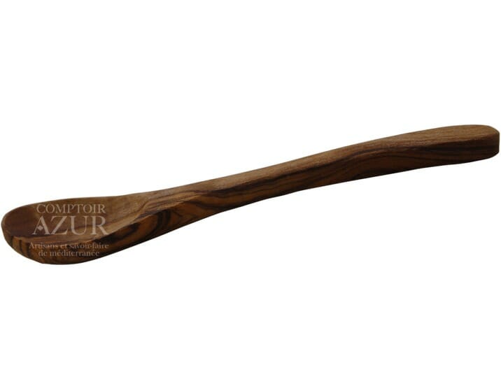- Cette petite cuillère en bois a été façonnée avec finesse dans un morceau de bois d’olivier pour lui donner cette jolie forme.